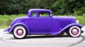 What you see pictured here is possibly one of the finest all steel 1932 Ford 5-window coupes ever assembled. Yes, it’s purple with pink wheels, but while in your minds eye that may seem radical, on this build, it works!! This car is simply stunning from all angles. It literally stops people dead in their tracks. The fit and finish are beyond reproach, the attention to detail is superb, and the cleanliness boggles your mind when you see that this car has been driven and enjoyed. Starting with a real original steel body and fenders, this 32′ received a four inch roof chop, custom glass, all new polished trim, new rubber seals, and a new polished grille inlay. The car was taken down to the metal and repainted in a gorgeous shade of purple that is completely custom. The wide whitewalls mounted on pink steelies with caps are the perfect color complement to the purple exterior finish. Custom grey pin striping was applied to class it up just a little and matches the interior color perfectly. And boy what an interior! This sumptuous interior is finished in grey period correct naugehide with tuck and roll upholstery throughout and plush wall to wall carpeting. The dashboard features custom gauges surrounded in gorgeous aluminum trim that matches the Vintage Air switches and the custom panel for lights and wipers. The steering column is polished aluminum with tilt and a custom panel is mounted above it for the electric fan switch, hi/lo beam switch and lockup OD control switch. There are white LED courtesy lights that illuminate when you open the door, a pull out “hidden” billet aluminum drink holder, and a trick hidden audio system mounted on custom hinges that swing down when you want the radio and swing back up under the dash when you don’t. This is one cleanly built ride!! The seat brackets are customized so that the seat goes all the way to the rear of the cab giving you excellent leg room. Even with a 6′ 2″ driver, there is still plenty of leg and head room. From the polished hex screw heads to the interior lay out, this car just exemplifies attention to detail!! This car is built atop a TCI chassis, with stainless steel front 4 link and drop axle. Out back is a Chrysler 8 3/4″ rear solid axle with a Eaton/Detroit limited slip and 3.55:1 rear axle ratio. The rear suspension features a stainless steel four link arrangement with adjustable coil over springs, rear stabilizer bar, and a panhard rod bar. Polished QA1 shock absorbers are found in all four corners, and steering sharpness is courtesy of a Borgeson steering gear box. The heart of this Deuce coupe is a GM Performance ZZ4 crate engine making 355 horsepower. This is linked to a 200R4 four speed automatic transmission with an overdrive lock up control module and makes for excellent road manners and fuel economy at speed. Keeping all these horses cool are a Walker aluminum radiator in combination with an electric radiator fan with shroud assembly. Providing the “woah” to match the “go” are front power disc brakes and power drums out back with stainless steel brake lines throughout. To drive this 32′ coupe is unlike any other 32′ you’ve ever driven before. There are no squeaks or rattles, the door close easily and tightly, and it starts at just a nudge of the key. Going down the road, you can easily cruise all day thanks to the gearing and ice cold AC. If you want to have fun, it’s got you covered there also. Put your foot into it and the horsepower will take this lithe little coupe quickly to go to jail speeds! You’ll be cool and comfortable while you stare at the flashing lights in your billet rear view mirror!The transmission shifts smoothly, there is not a noise to be heard from the suspension, the ride is tight and well controlled, and the brakes are easy to modulate and bring the car to a straight stop quickly. I can’t say enough about the quality of this car, and what a joy it is to drive.