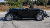 This gorgeous 1932 Ford Roadster is one classy chassis!! Featuring an all steel body with canvas top and cloaked in a black finish so glossy it looks a mile deep, this roadster is sure to win trophies and turn heads wherever you go. The beautiful chrome wire wheels, luggage rack, spotlights, and chrome trim make this deluxe 32′ a functional driver if you were to so choose. Helping in that endeavor is a modern small block 350 Chevrolet engine hooked to an automatic transmission with overdrive and a stout Ford 9″ rear axle make for easy highway cruising. Power front disc brakes, power steering, vinyl bench seat, tilt steering wheel, and ice cold air conditioning make this a comfortable cruiser also.