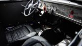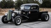 This blacked out bad boy is one mean machine! It has a 1941 Ford truck body that is sitting on a custom chassis. It has been chopped four inches and channeled six inches. The bed has been bobbed a full twelve inches, with ladder bars, a truck 9″ differential with 3.73 gears, and a fuel cell have been added out back. Up front are tubular control arms, coil over shocks with adjustable ride height, and a 32′ Ford grill sheel with a fat custom aluminum radiator.