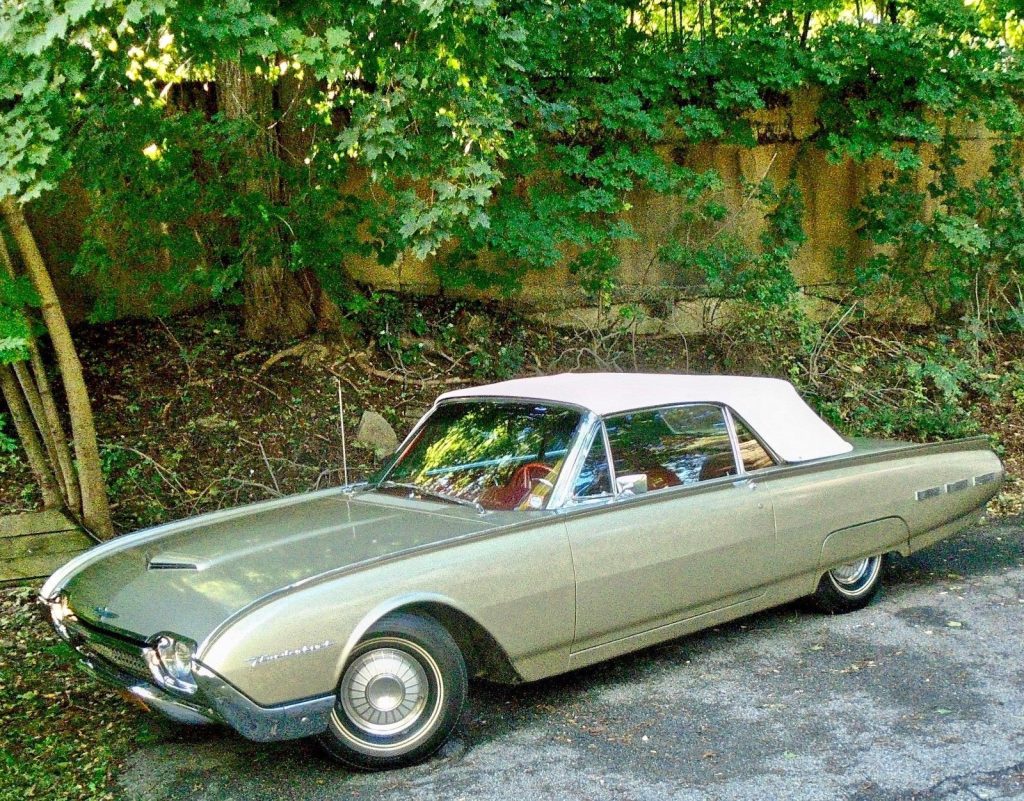 1962 Ford Thunderbird Convertible. 42K Original miles. Very interesting history on this Original One-Owner automobile. Extraordinary original condition in countless ways, all from the Ford factory. Most parts on this Thunderbird are original museum quality. The body of this Thunderbird convertible is laser straight. Gorgeous color combination of Anniversary Gold exterior / Red interior, and the Original Ford white convertible top.