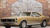 1967 Chevrolet Camaro RS/SS 4-Speed Manual in its original Granada Gold color (previous respray) with Black Stripe over a Gold Deluxe interior. Powered by a 350/300 hp V8 crate motor with a Performance Cam, Edelbrock RPM Air Gap Intake Manifold, Edelbrock 4-Barrel Carburetor, Edelbrock Aluminum Heads, Hooker 4-1 Headers, Summit Racing Accessory Serpentine Belt System, Aluminum Water Pump, Aluminum Radiator, and Dual Electric Fans. Suspension has been upgraded with lowering springs, rear air shocks, and front and rear sway bars.
