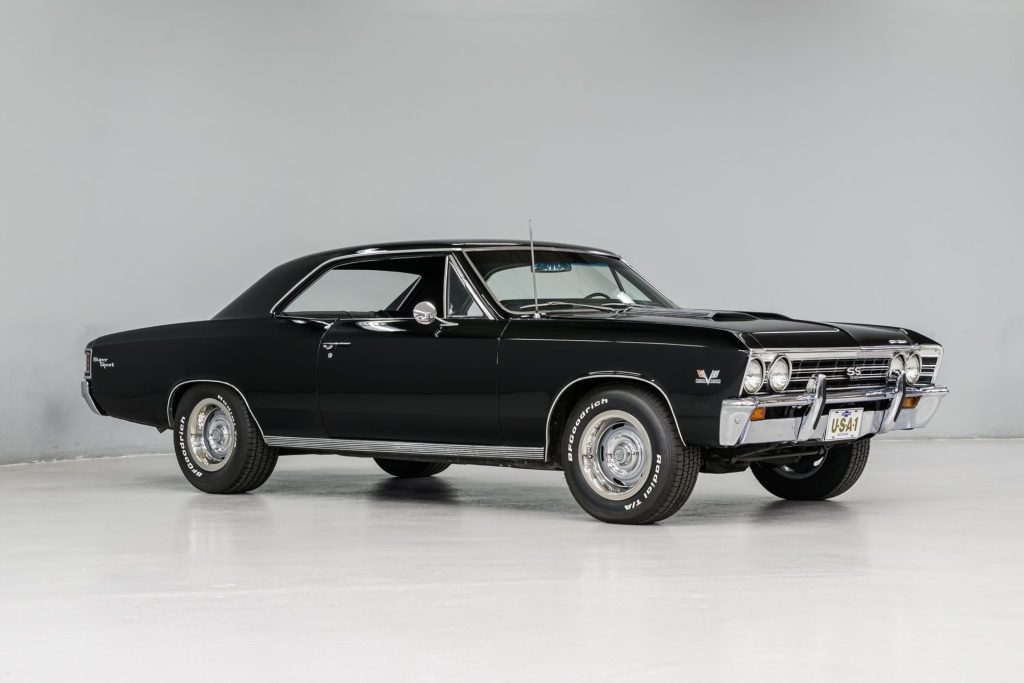 This ‘138’-code Chevelle SS396 has been the recipient of a restoration (2020) and is as close to original as you can imagine, engine/transmission/differential are all numbers-matching. The 396ci/350hp L34 ‘big-block’ (many say it was still 360hp as was the previous year) has been bored .030 over and completely rebuilt. The factory ‘closed chamber’ heads are excellent for the street as they flow well at moderate RPMs and produce good compression. The ‘Rat’ is fitted with a Holley performance carb and 396/375 hydraulic Comp Cam w/roller rockers. Factory exhaust manifolds empty into a free-flowing dual exhaust system. The Muncie M-21 wide-ratio 4-speed is fitted with a Hurst Comp+ shifter and transfers torque to a 12-bolt open differential with 3.55:1 gearing. This is a very practical street setup from front to back – this Chevelle sounds and runs great. The SS396 has been refinished in original Tuxedo Black (A-code). Chrome is excellent and accents include SS hood and new Chevy 15×8” rally wheels w/BFG Radial T/A tires. (The owner is also including four factory steel wheels w/new tires and Super Sport hubcaps.) The completely restored black vinyl interior is 1967 revisited – upholstery, door cards, headliner, carpeting and dash are all correct. Features include bucket seats, console w/clock, factory wheel and tinted windows. A set of aftermarket gauges and tachometer have been installed. Underneath, the clean chassis is equipped power steering, manual disc/drum brakes w/dual master cylinder and SS suspension w/front sway bar. A new fuel tank has also been installed.
