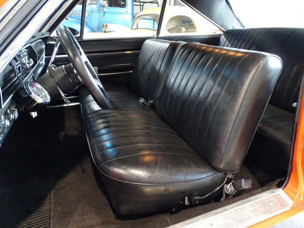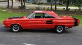 The interior is clean and shows very well with a few iequus gauges under the dash, a Grant GT steering wheel, and a Super Tach II installed. Other than that, it is very stock and ready to show off. The exterior grabs your attention in Bright Orange with the Black tail stripe and American Racing Torq Thrust wheels. The back end is shackled and gives this Coronet that classic muscle car stance. If that isn’t your look, it is easily lowered.