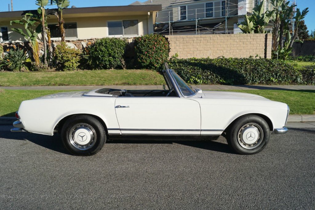 All models were equipped with an inline-six cylinder engine with multi-port fuel injection. The hood, trunk lid, door skins and tonneau cover were all made of aluminum to reduce weight. The comparatively short and wide chassis, combined with an excellent suspension, powerful brakes and radial tires gave the W113 superb handling for its time. The styling of the front, with its characteristic upright Bosch ‘fishbowl’ headlights and simple chrome grille, dominated by the large three-pointed star in the nose panel, paid tribute to the then already legendary 300 SL roadster.