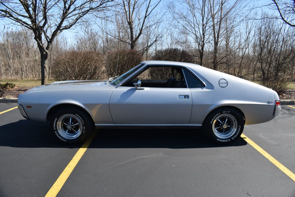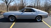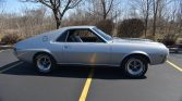 Being a factory “Go Pack Car”, it comes with some nice performance upgrades including upgraded cooling from the 4 core radiator, power front disc brakes, and heavy-duty suspension with thicker sway-bars. Some other upgrades that were special ordered with this particular AMX is the 315 HP / 425 torque 390 CU IN V8 and the 4 speed manual transmission. Form the factory the 390 medium block came with forged steel crankshaft and connecting rods, as well as larger rod bearings. The performance produced was very respectful with a 0 to 60 time of 5.7 seconds, which could be reached in first gear. The factory 54A code turbo silver metallic paint and chrome are in excellent condition. The black vinyl interior is also in excellent condition and features options like factory in dash tach, bucket seats, and factory AM/FM radio.