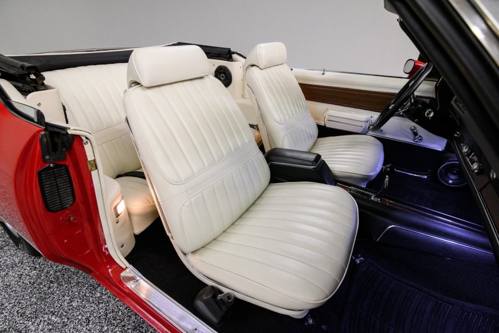 The frame-off restoration included a bare metal strip, frame restoration, some new body panels and new bumpers. Matador Red is the perfect color, fit and finish is exceptional and the 4-4-2 badging is factory correct. The white power convertible top is in excellent condition and 14” Olds rally wheels with Cooper radials are perfect accents. The restored white vinyl interior looks every bit as good as the original. Features include: A/C, Hurst Dual-Gate shifter, tilt wheel, tinted windows…