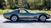 The beautiful and elegant looking September 71′ build 1972 Stingray pictured here is painted in its original code 988 Steel Cities Grey with 15×8 inch Chevrolet Rallye wheels wrapped in brand new white letter radial tires. This rather unique color is almost more of a green grey than a standard grey, and with the beautiful chrome bumpers and silver painted wheels it really jumps out and grabs you. This car is a looker. The interior of this beauty is complete in its original code 400 black vinyl as it left the factory. The carpets and seats are in excellent condition, and all gauges(exc. oil pressure and clock) are 100 percent functional. This classy Corvette features the custom seat belt option with shoulder straps, a tilt and telescopic steering wheel, AM/FM mono stereo, power steering and power brakes. Under the hood is the numbers matching, August 71′ build date, CKX coded, 200HP 350CI V-8 mated to a Turbo Hydramatic three speed automatic transmission. The standard ratio 3.08 rear axle features posi traction and disc brakes are present all around.